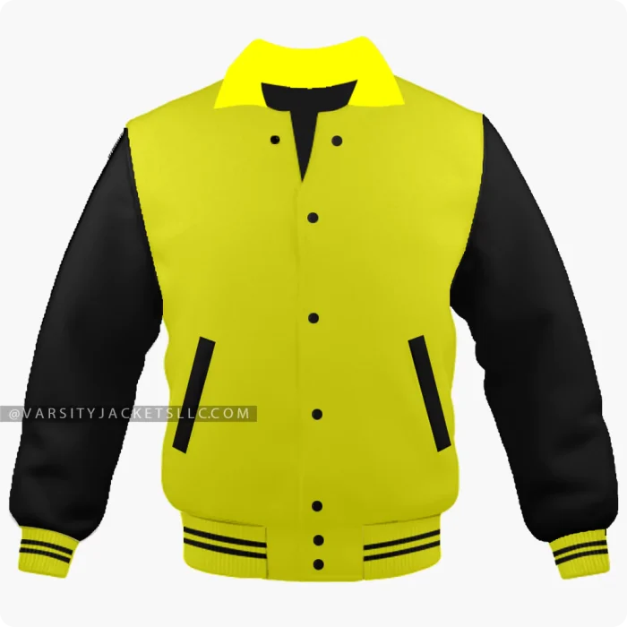 Yellow And Black Varsity Letterman Jacket, Byron Collar For Men And Women