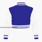 Navy Blue And Off White Cropped Varsity Jacket For Women Back