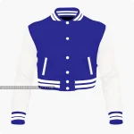 Navy Blue And Off White Cropped Varsity Jacket For Women Front