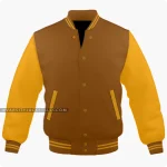 Step into comfort with this stylish brown and orange varsity jacket for men and women. The color combo stole the show indeed but that’s not it, this jacket is made from high-quality wool, and the regular-style collar gives a luxury finish to the entire look. This brown and orange letterman jacket is a must-have for all jacket lovers looking for a unique addition. It is easy to wash and doesn’t fade away after the wash. What if we tell you you can design your varsity jacket? Customize these brown varsity jackets according to your collar style (byron or regular), size, fabric (satin or leather), and color combination!