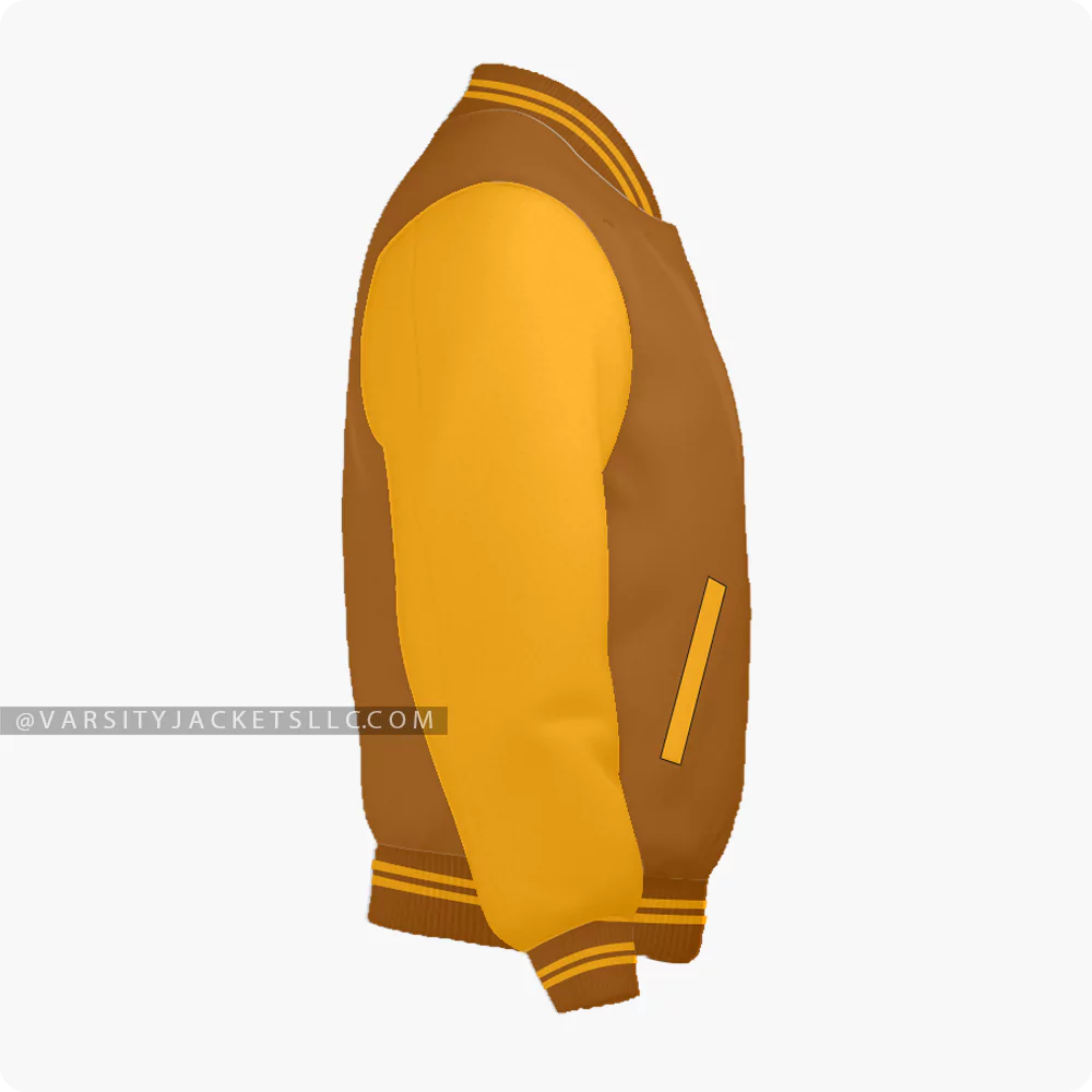Brown and Orange Regular Collar Varsity Jacket For Men & Women