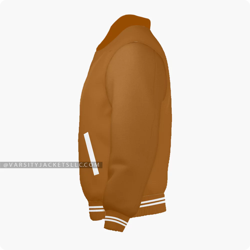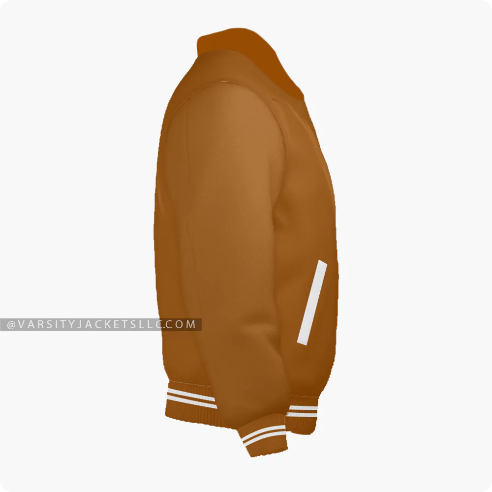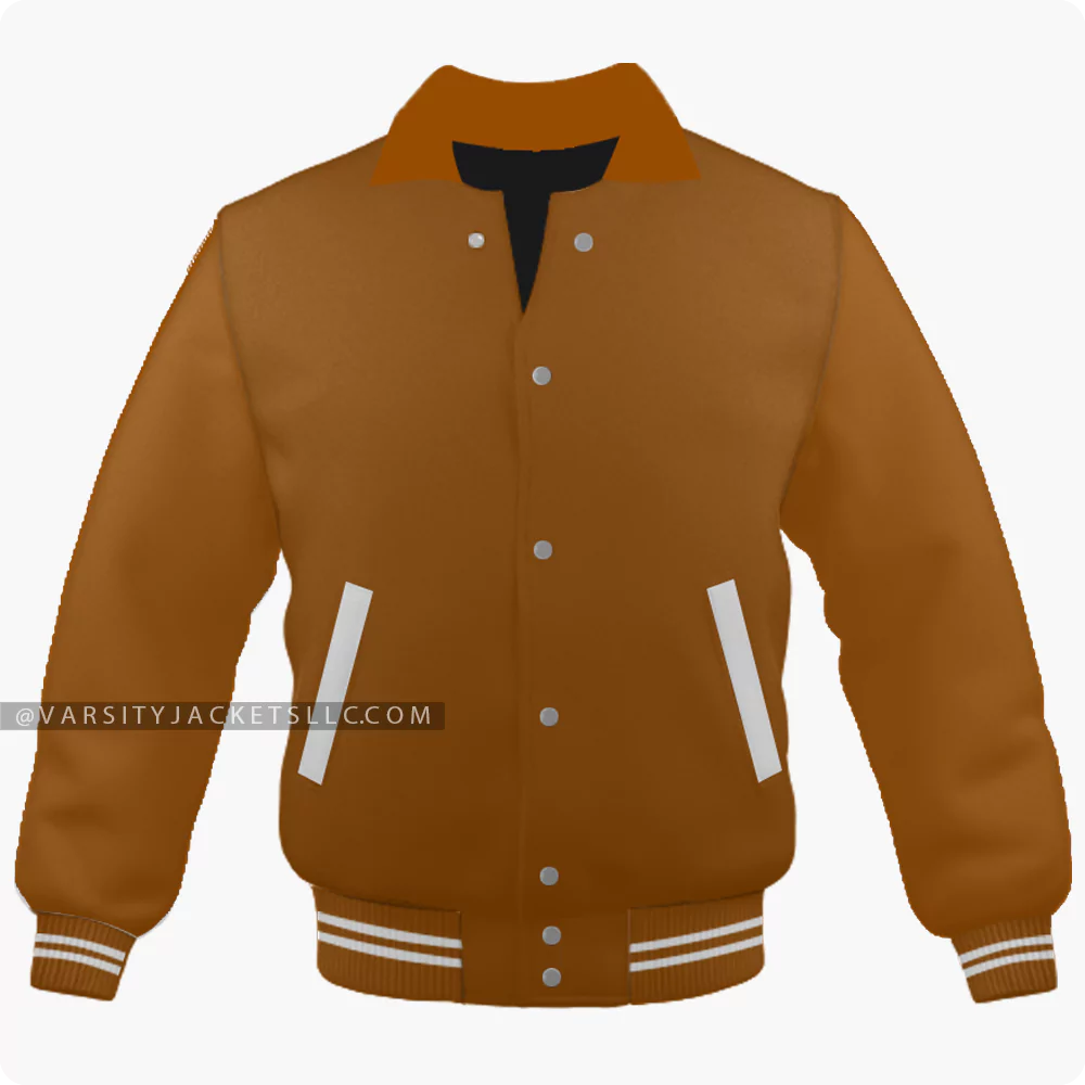 Step into comfort with this stylish brown varsity jacket for men and women. The color combo stole the show indeed but that’s not it, this jacket is made from high-quality wool, and the byron-style collar gives a luxury finish to the entire look. This brown letterman jacket is a must-have for all jacket lovers looking for a unique addition. It is easy to wash and doesn’t fade away after the wash. What if we tell you you can design your varsity jacket? Customize these brown varsity jackets according to your collar style (byron or regular), size, fabric (satin or leather), and color combination!