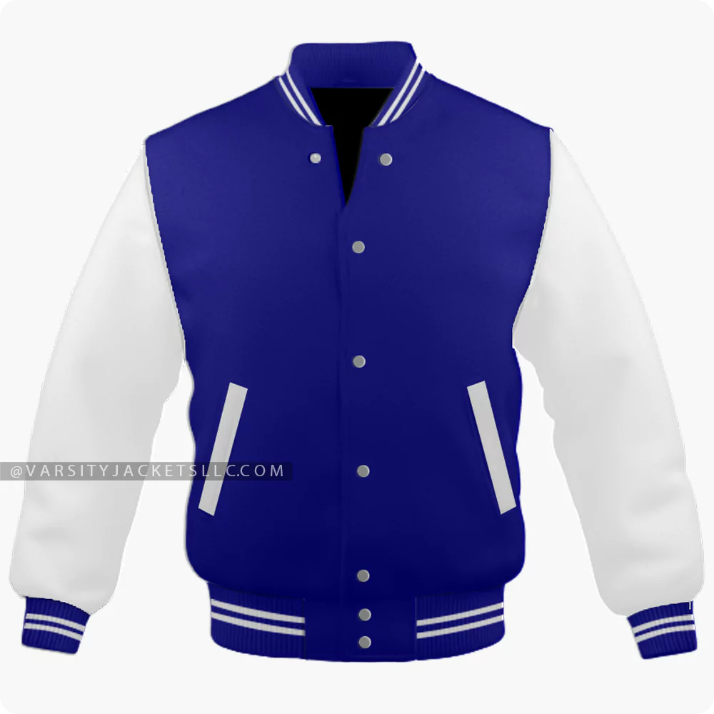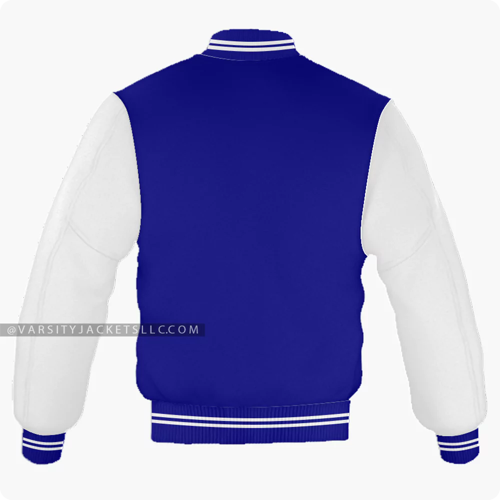 Add colors to your life and wardrobe with this timeless navy blue and white varsity jacket! Are you fed up with wearing the same boring color jackets? This duo of white and navy blue colors in this varsity jacket for men and women is a perfect fusion of colors that will boost your confidence. If you are looking for something comfortable and durable for all seasons then this jacket is for you! Made from premium quality wool ensures longevity and originality that will last generations. The regular-collar style makes this navy blue and white varsity jacket different and unique which is uncommon in all other jackets. Want to design your own style jacket? Customize these navy blue varsity jackets according to your collar style (byron or regular), size, fabric (satin or leather), and color combination!