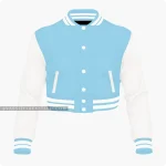 Light Blue Cropped Varsity Letterman Jacket For Women