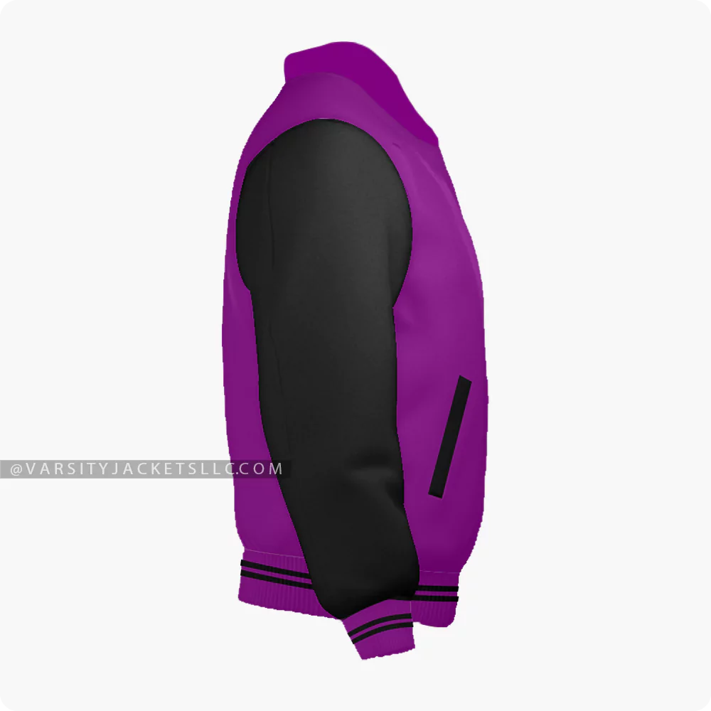 Indulge in the essence of classiness and royalty with our purple and black varsity jacket! What makes it royal and grabs attention is the byron-collar style and colors. Purple is the color of royalty and empowerment mixed with black it is outstanding. Crafted with high-quality wool it assures comfortability and durability that will stay for generations. It’s a rough and tough jacket for all occasions, be it casual or semi-formal. Let your style speak volumes with this purple and black varsity jacket for men and women. Customize these purple varsity jackets according to your collar style (byron or regular), size, fabric (satin or leather), and color combination!