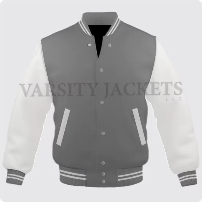Grey And White Varsity Letterman Jacket  For Men And Women