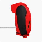 Veste varsity rouge et noire à capuche pour hommes et femmes