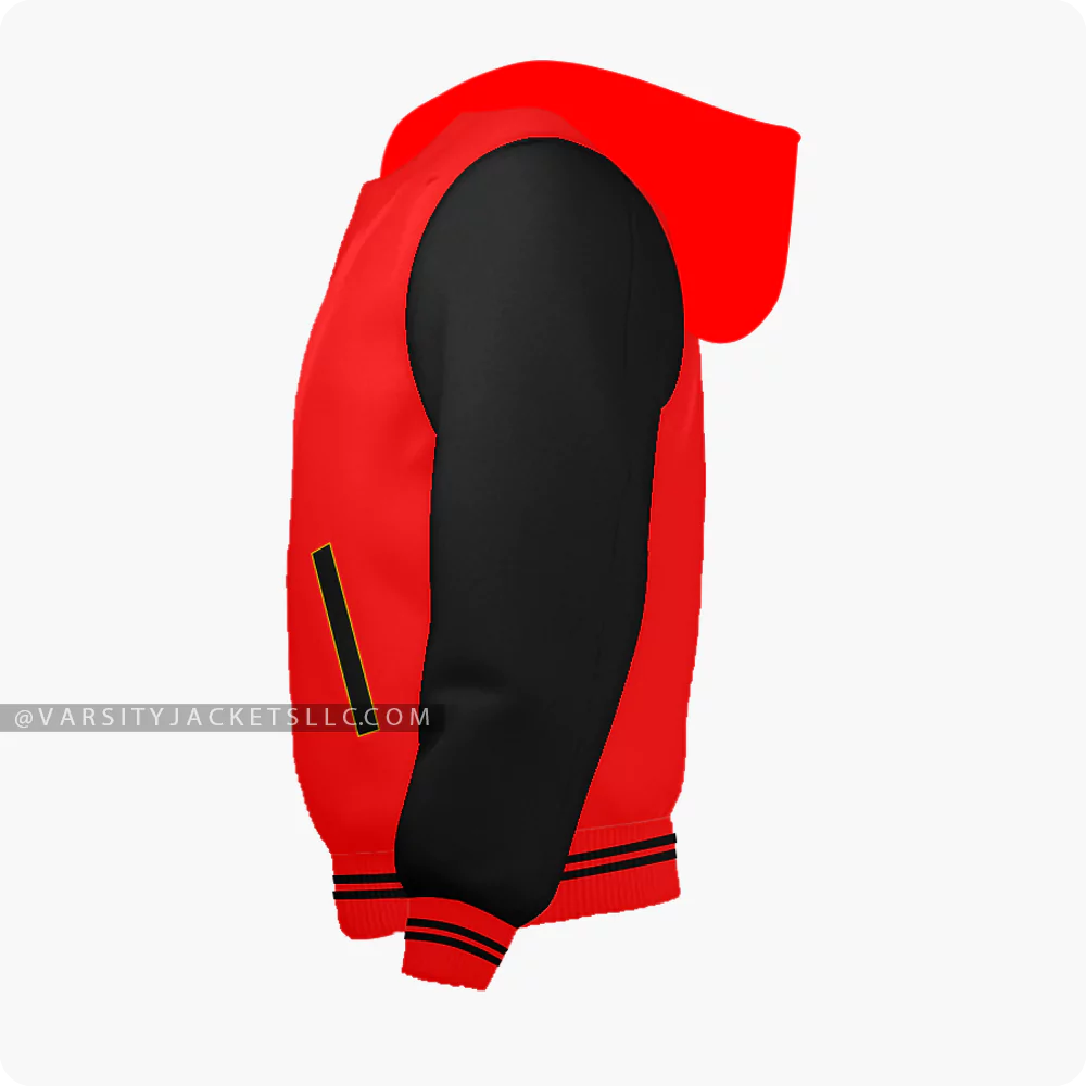 Veste à capuche Varsity Letterman rouge et noire pour hommes et femmes