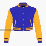Veste Letterman universitaire courte bleu royal et orange pour femme
