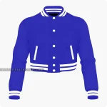 Women Royal Blue And White Varsity Jacket Front.