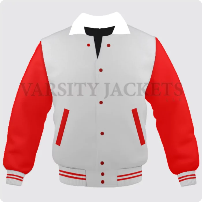 White And Red Varsity Jacket, Byron Collar For Men And Women Back
