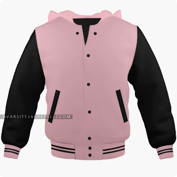 Pink And Black Varsity Jacket Hoodie Front