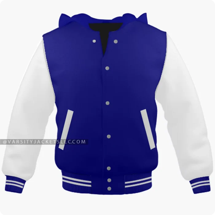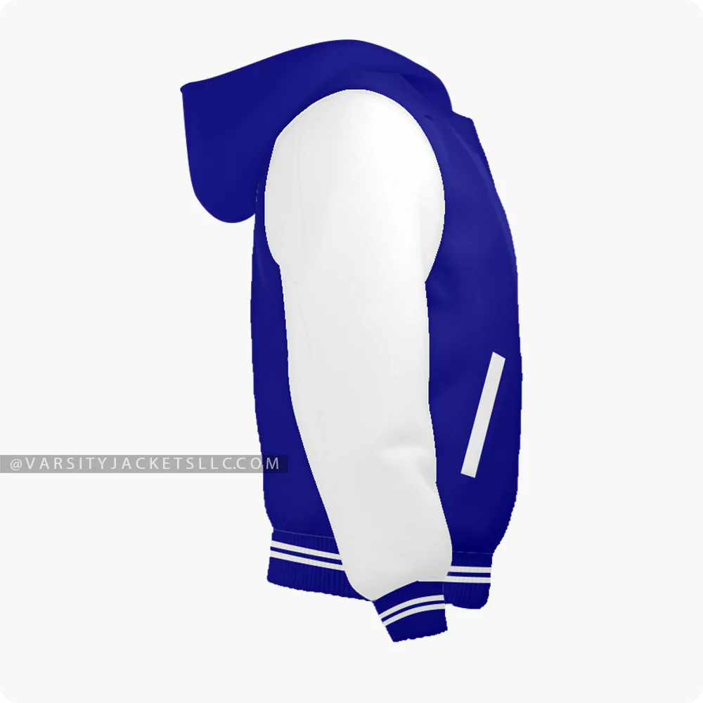 Add colors to your life and wardrobe with this timeless navy blue and white varsity jacket ! Are you fed up with wearing the same boring color jackets? This duo of white and navy blue colors in this varsity jacket for men and women is a perfect fusion of colors that will boost your confidence. If you are looking for something comfortable and durable for all seasons then this jacket is for you! Made from premium quality wool ensures longevity and originality that will last generations. The Hoodie-collar style makes this navy blue and white varsity jacket different and unique which is uncommon in all other jackets. Want to design your own style jacket? Customize these navy blue varsity jackets according to your collar style (byron or regular), size, fabric (satin or leather), and color combination!