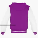 Indulge in the essence of classiness and royalty with our purple and white varsity jacket! What makes it royal and grabs attention is the hoodie-style and colors. Purple is the color of royalty and empowerment mixed with white it is outstanding. Crafted with high-quality wool it assures comfortability and durability that will stay for generations. It’s a rough and tough jacket for all occasions, be it casual or semi-formal. Let your style speak volumes with this purple and white varsity jacket for men and women. Customize these purple varsity jackets according to your collar style (byron or regular), size, fabric (satin or leather), and color combination!
