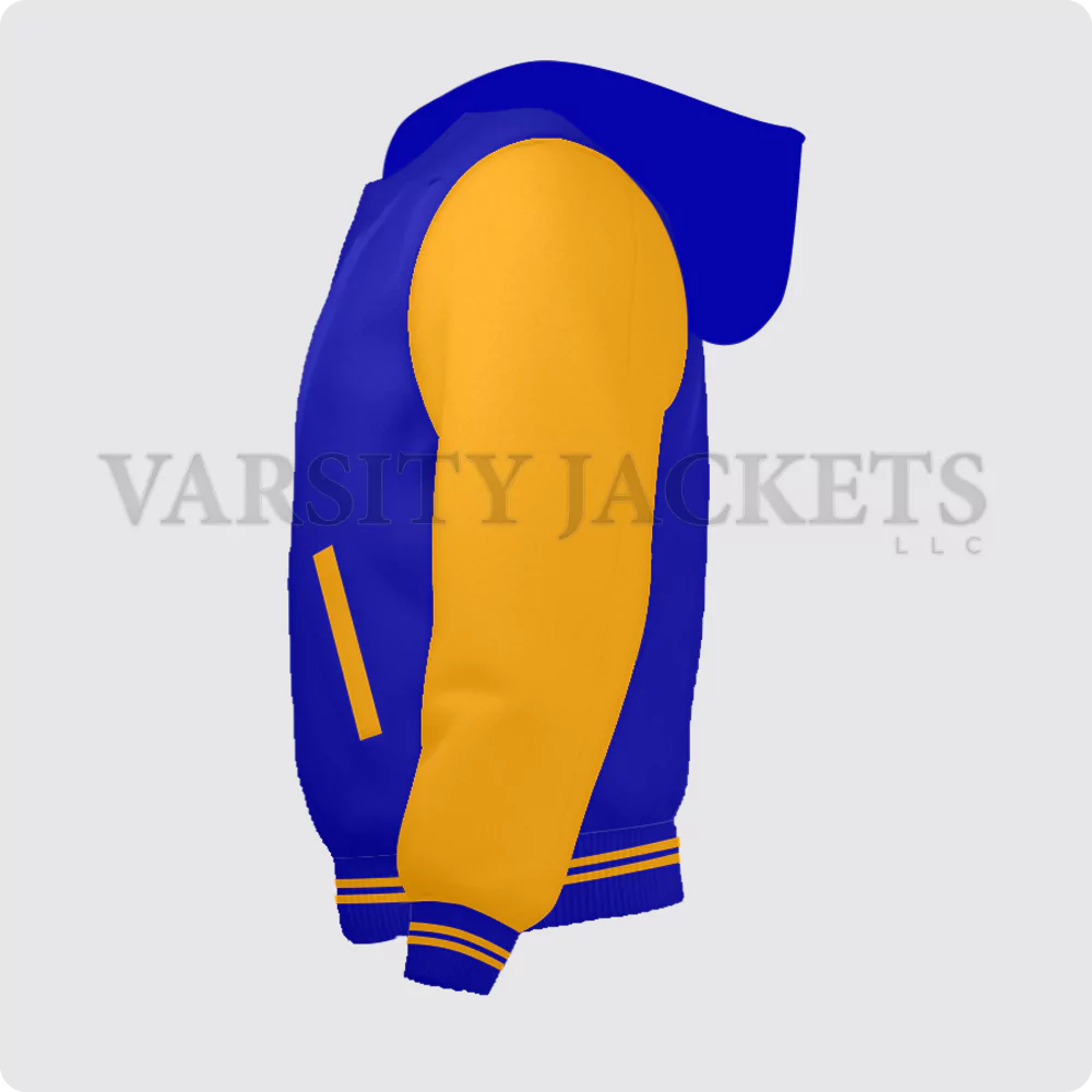 Experience the epitome of modesty with this royal blue and orange varsity jacket for men and women. This masterpiece tells the story of generations that won’t fade out ever. The white sleeves and Hoodie-collar complement the entire look as they add a fusion of colors and style. This jacket is made from imported quality wool which makes it durable and comfortable. Customize these royal blue varsity jackets according to your collar style (byron or regular), size, fabric (satin or leather), and color combination! What else do you need in a jacket that is made to represent your individuality and style? Get this affordable women’s and men’s royal blue and orange varsity jacket to upgrade your jacket collection!